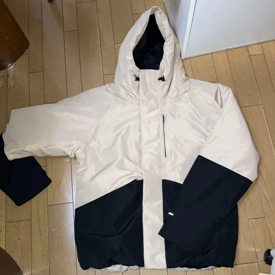 베이지와 블랙 콤비네이션의 후드 부착 자켓, 지퍼 포켓 부착. - 색상: 베이지와 블랙 콤비네이션 - 디자인: 후드 부착, 지퍼 포켓 있음 - 스타일: 다운 자켓 택은 제거했지만, 새상품입니다. 시착만 한 상품입니다. 방문해 주셔서 감사합니다.