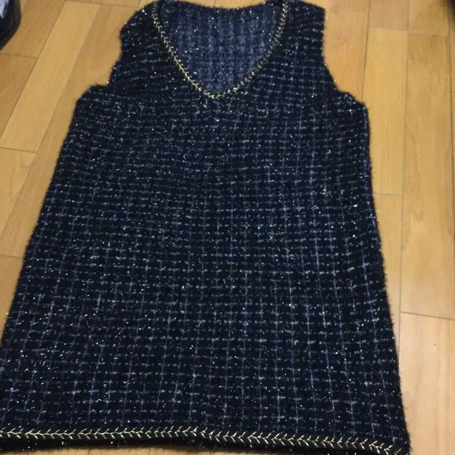 트위드 라이크 V넥 베스트 Gready Brilliant 블랙 라메