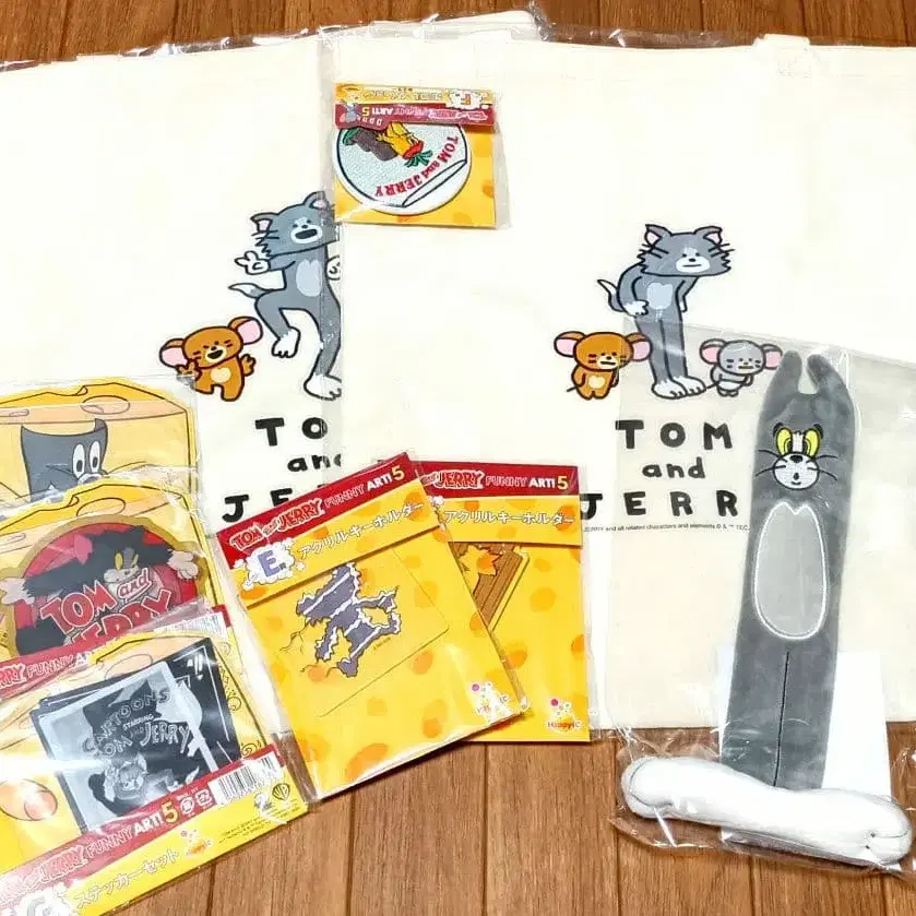 톰과 제리 해피 복권 경품 세트입니다. 토트백 2종 A-20 피규어 파우치 스티커 캔 거울 아크릴 키링 특상 제리 봉제 인형