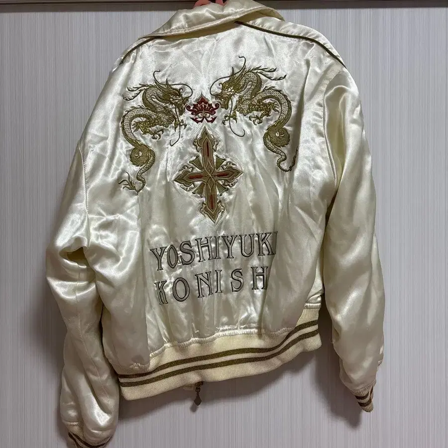 아이보리 새틴 소재에 드래곤 자수가 들어간 YOSHIYUKI KONISHI 스카잔. - 브랜드: YOSHIYUKI KONISHI - 디자인: 드래곤 자수 - 색상: 아이보리 - 소재: 새틴 방문해 주셔서 감사합니다. 색상 - 화이트 계열 소재 - 새틴
