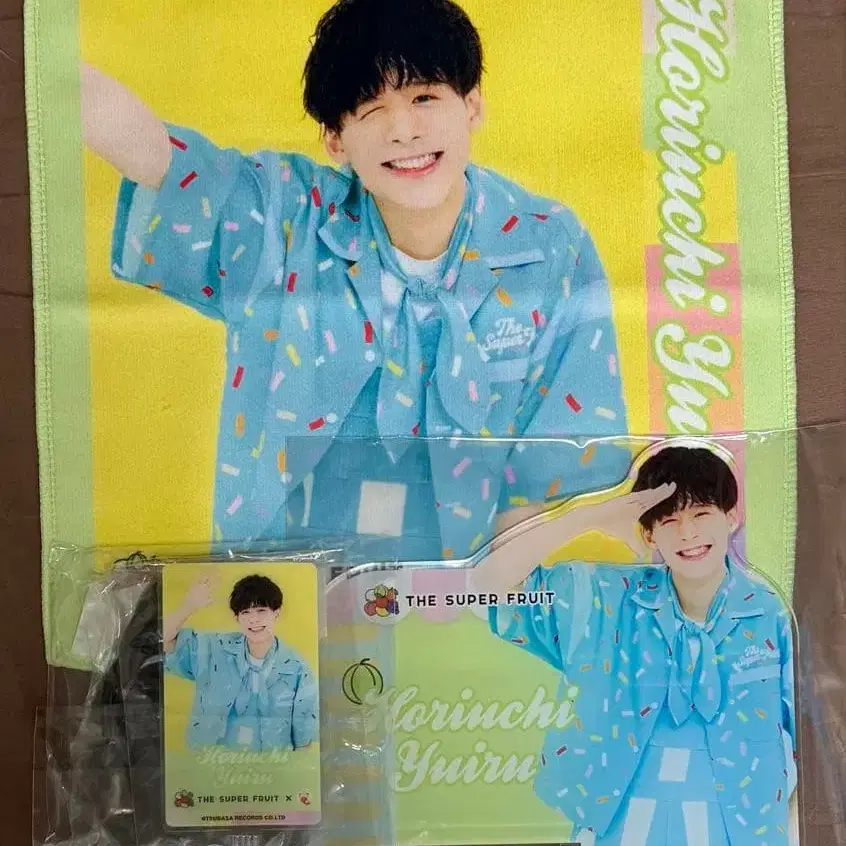 THE SUPER FRUIT 호리우치 유루 군의 기프트 세트입니다. 미니 타월 아크릴 스탠드 스트랩 참 각 1점씩입니다. 미니 타월만 봉투에서 꺼냈지만, 감상용으로 케이스 안에서 보관했습니다.