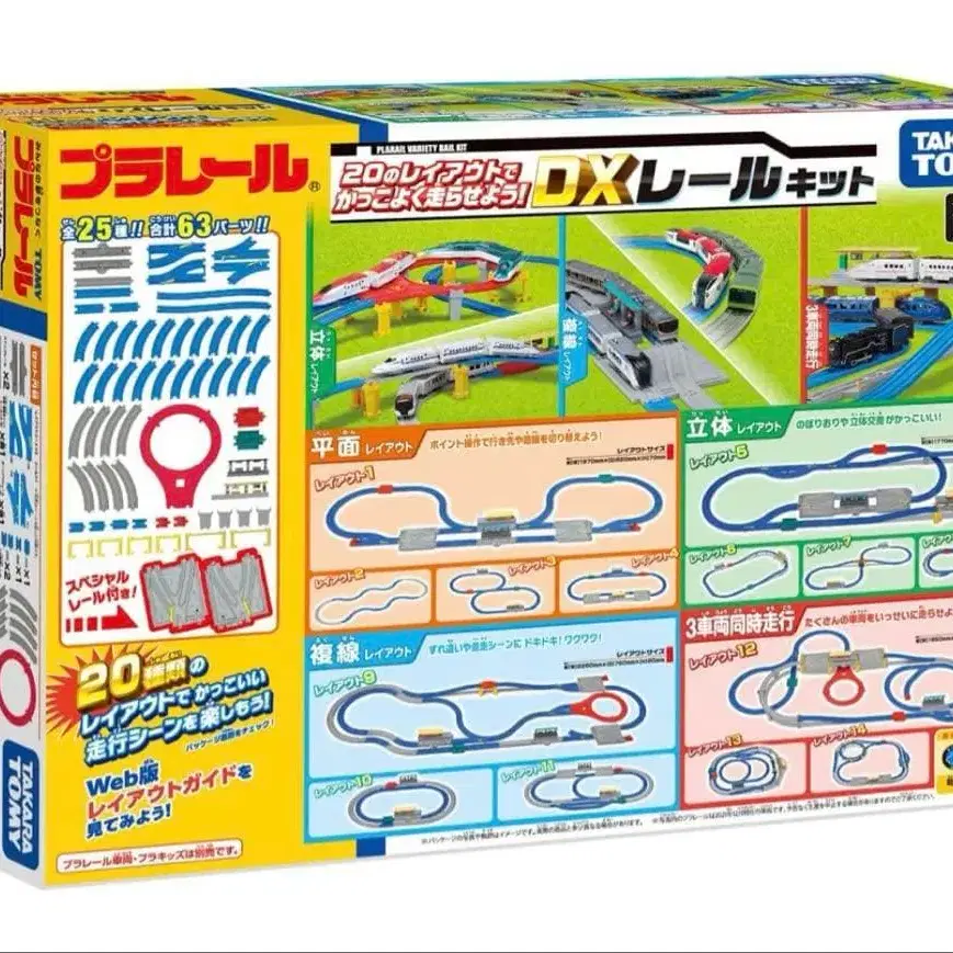 20가지 종류의 레일 부품을 사용하여 자유롭게 조립 가능한 프라레일 세트.