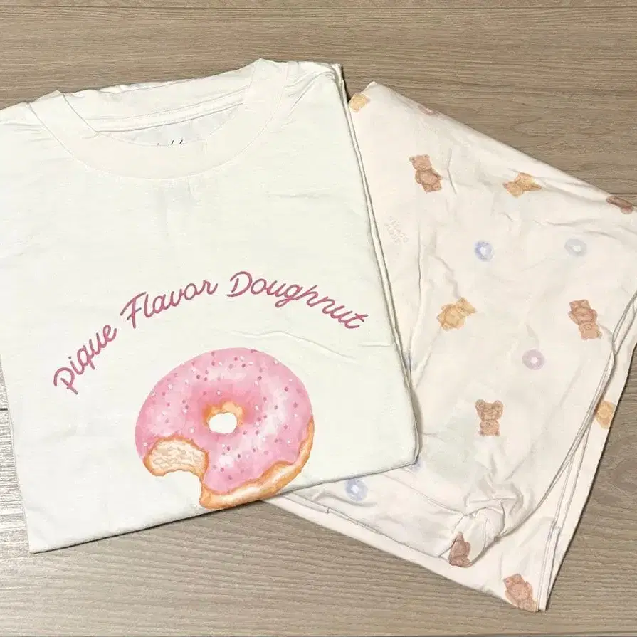 자동 번역되었어요. 원문보기[ 부드러운 터치의 도넛과 베어를 조합한 긴팔 T셔츠와 롱 바지입니다 ⚘ ⠜ ]