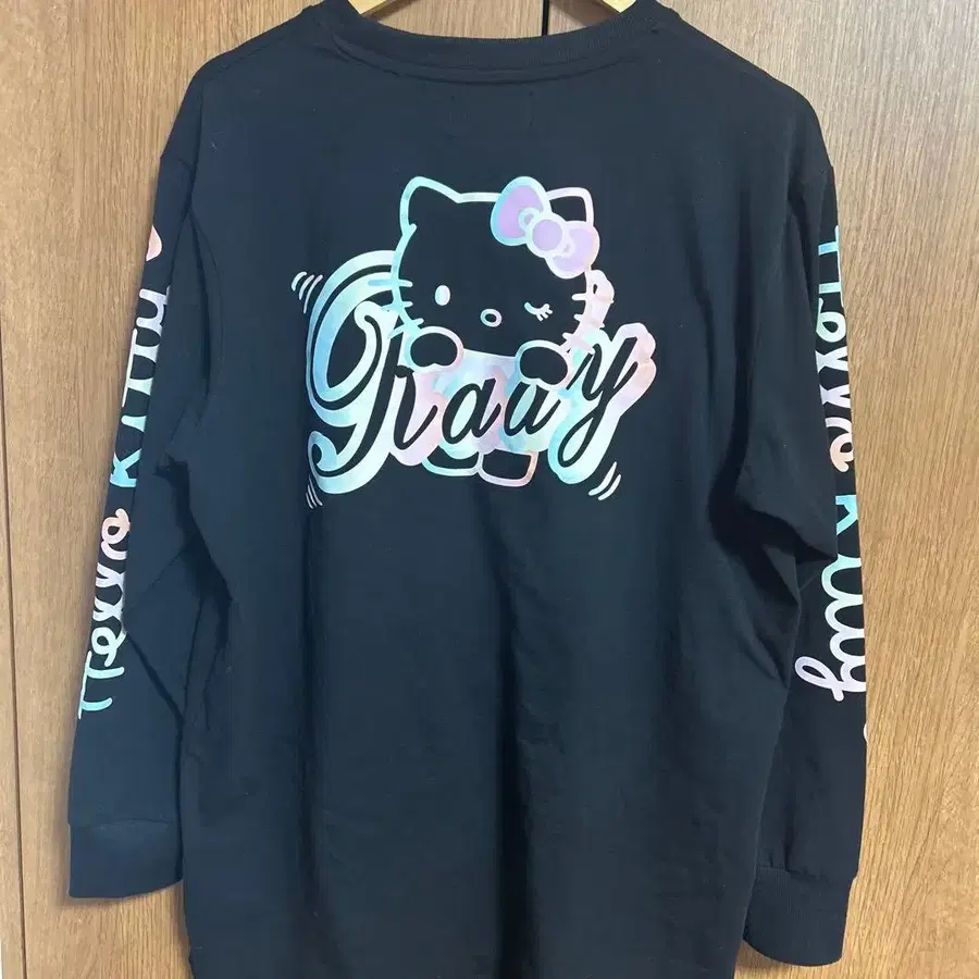 헬로키티의 컬러풀한 디자인이 특징인 긴팔 T셔츠.