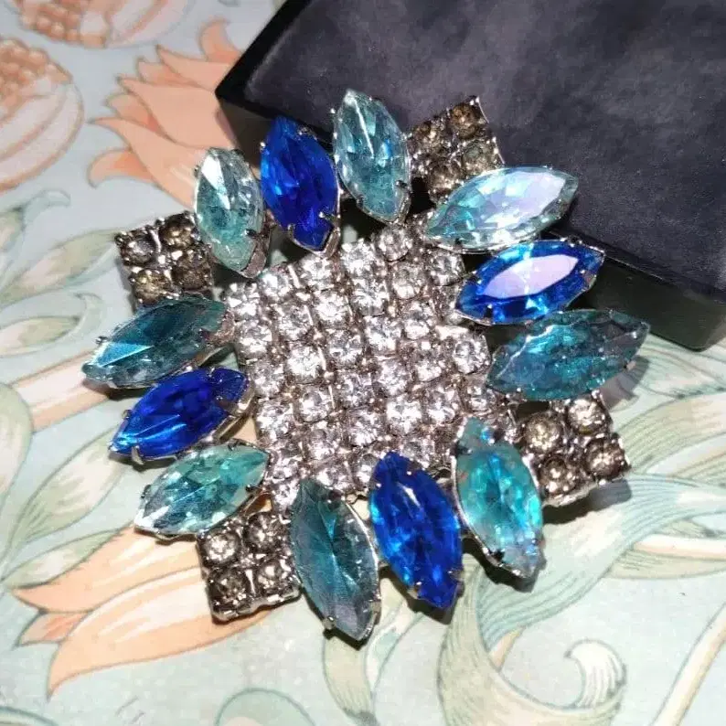 블루 그라데이션 & 실버 마름모 빈티지 브로치