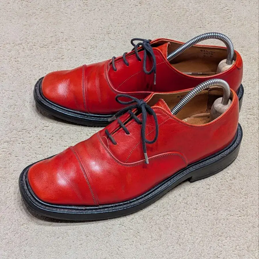 상품은 트리커스의 빨간색 스트레이트 팁입니다. 신은 흔적에 의한 주름이나 약간의 흠집은 있지만, 크게 눈에 띄는 상처나 얼룩은 없다고 생각합니다. 하프 러버가 장착되어 있어 앞코 마모는 없습니다. 힐도 교환되어 있어 마모는 없습니다. 사이즈는 6 24cm 정도입니다.