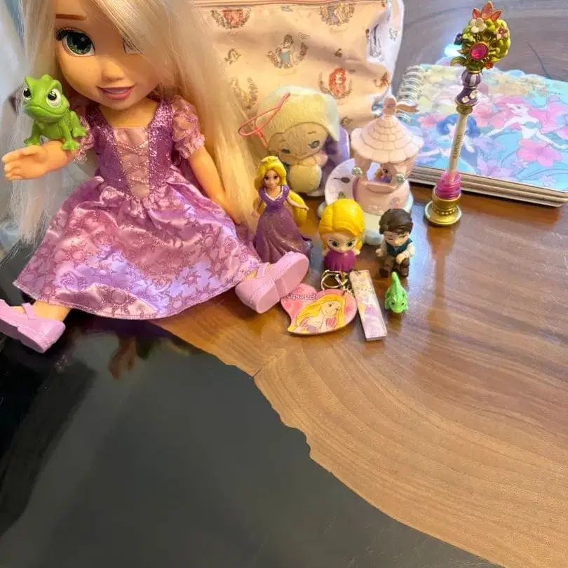 라푼젤 인형과 디즈니 프린세스 잡화가 모두 포함된 세트.