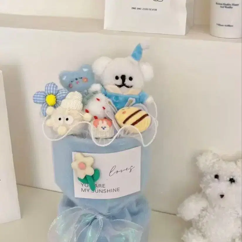 몰티즈 치즈 봉제 인형 부케 블루 색상의 부케입니다. 미사용 새상품입니다. maltese