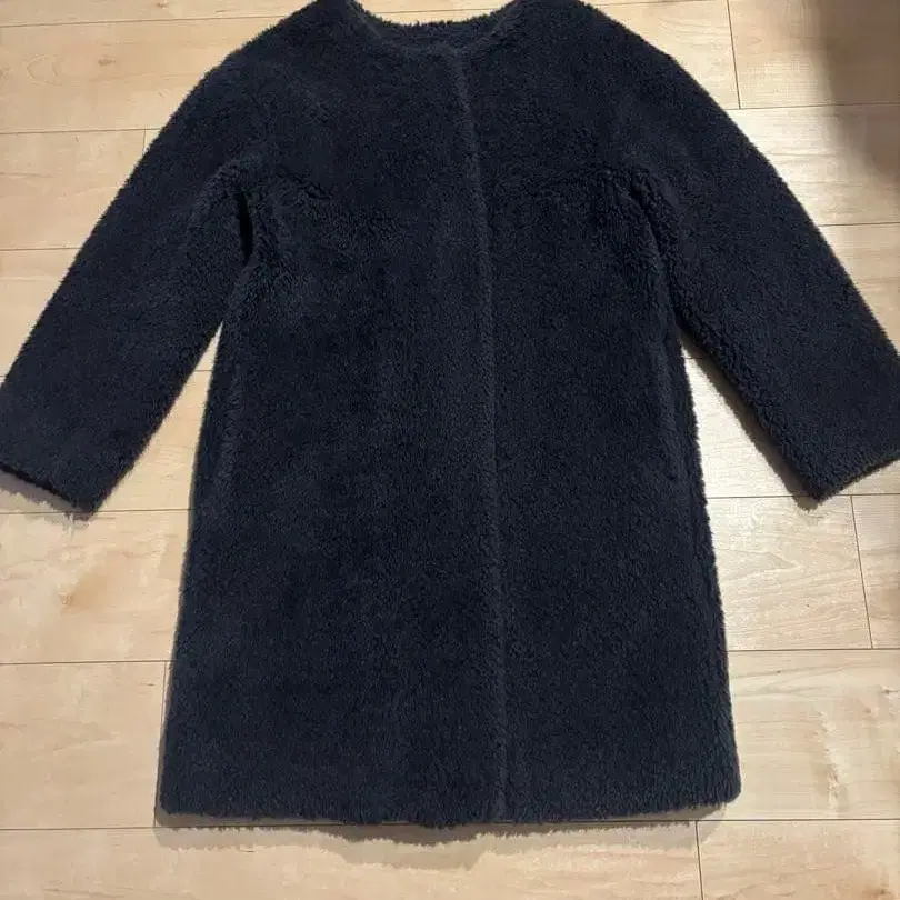 부드러운 보아 원단의 블랙(다크 네이비로도 보이는) 롱 코트입니다. 가볍고 따뜻해서 활약할 것이라고 생각합니다. 캐주얼하면서도 품격이 느껴지는 디자인입니다.