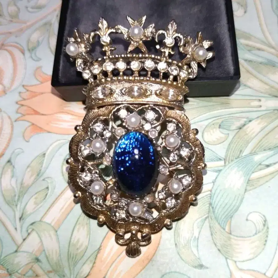 블루 드래곤즈블레스 모조 진주 왕관 디자인 빈티지 브로치