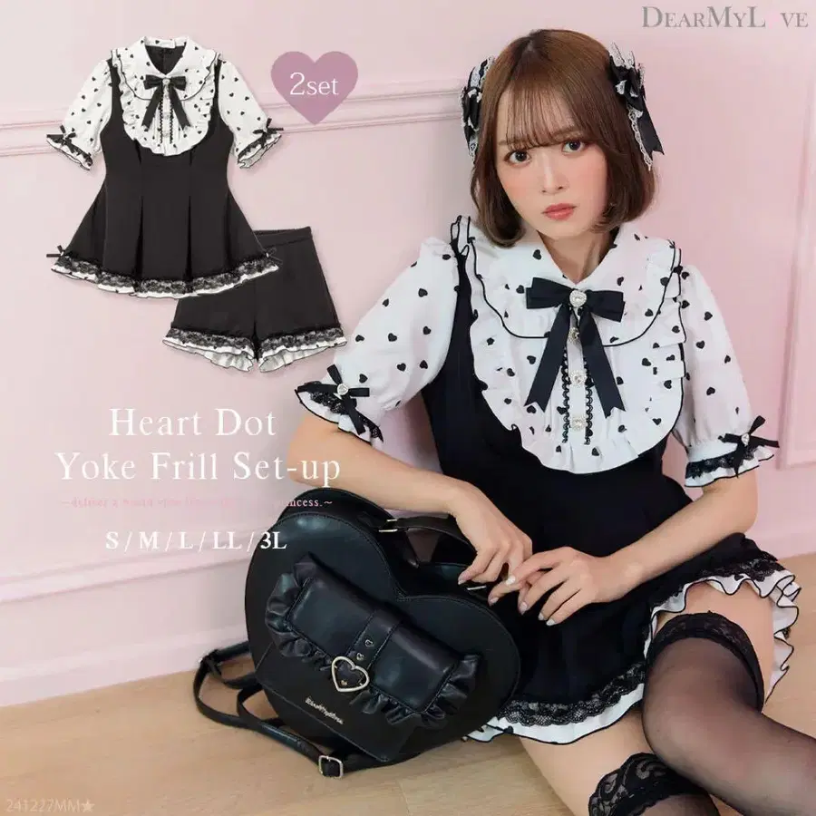 DearMyLove 유메텐보 하트도트 요크프릴 셋업 화이트