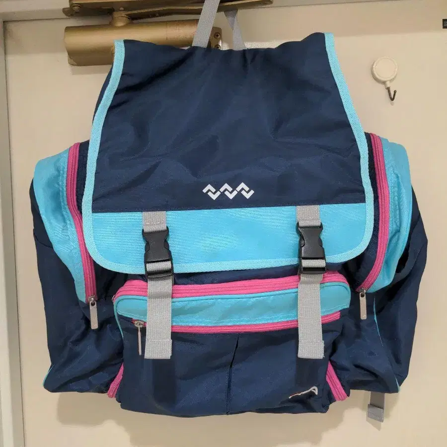 #FILA 플랩 백 네이비와 터콰이즈 배색으로, 조정 가능한 스트랩과 앞면 및 옆면 포켓이 있습니다. - 브랜드: FILA - 스트랩: 조정 가능한 스트랩 방문해 주셔서 감사합니다. #초등학생 #중학생 #휠라 #대형백 #여행 #수학여행 #합숙