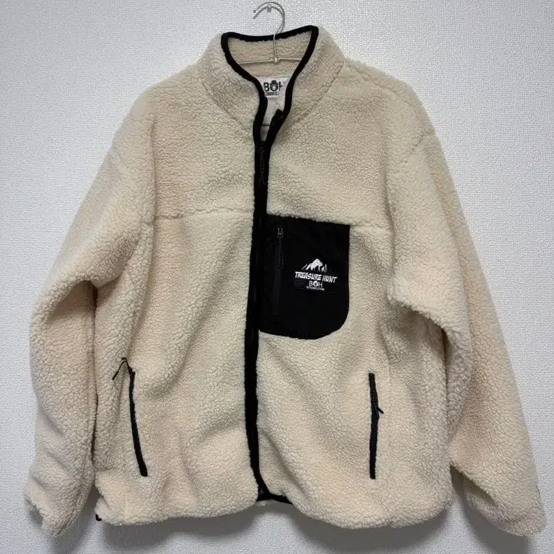 보아 플리스 자켓 화이트 레드 배색 풀 집업 방한 XL 겨울 귀여운