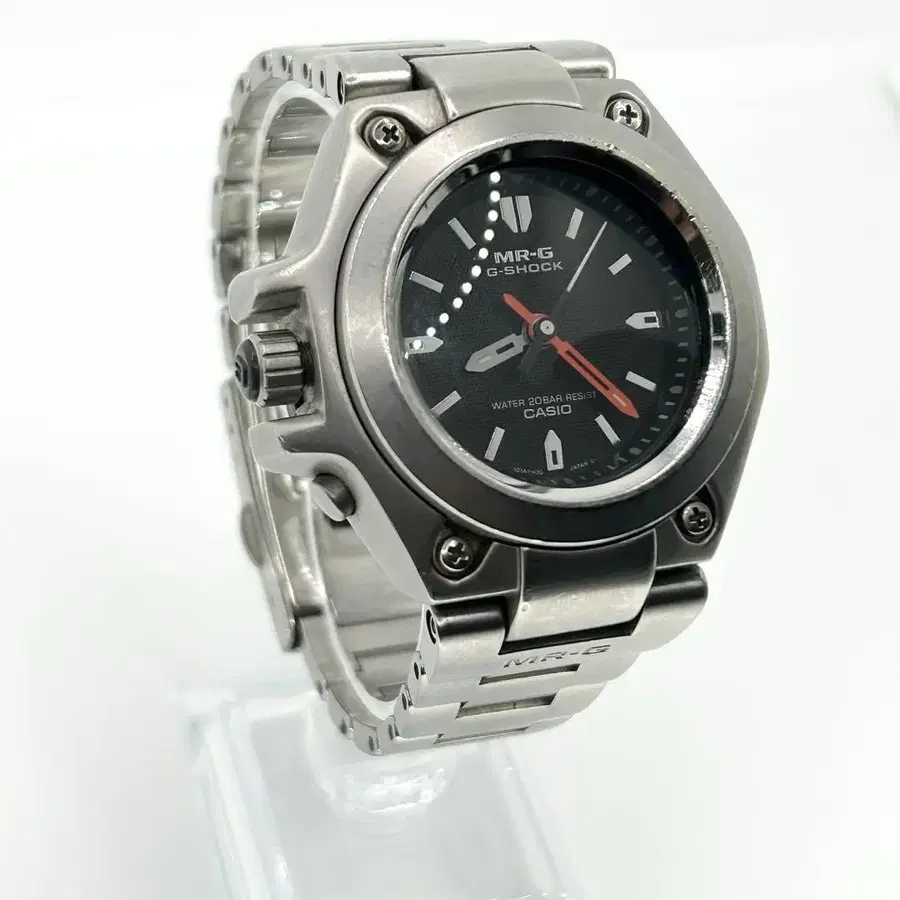[ 현상품 ] CASIO G-SHOCK MRG-120-1A 배터리가 방전되었습니다. 배터리가 방전되기 전에는 정상 작동했지만, 배터리 교환 후 보증이 어렵기 때문에 현상품으로 판매합니다. 크라운을 돌려 긴 바늘과 짧은 바늘이 움직이는 것은 확인할 수 있습니다. [ 상품 개요 ] 손목시계 디지털 시계 watch 작동 풀 메탈 왼쪽 크라운 백라이트 y2k 90s 00s 아카이브 archive 레어 구하기 어려움 생산 종료 20기압 방수 기능을 갖추고 있어 일상생활은 물론 아웃도어 활동에서도 활약합니다. ● CASIO G-SHOCK ● 모델번호: MRG-120 ● 팔 둘레: 약 17.5cm ● 소재: 스테인리스 ● 방품: 유리 ● 케이스 사이즈: 약 40mm ● 내충격 구조 ● 백라이트 - 색상: 실버 - 방수 성능: 20기압 방수 - 기능: 쿼츠 - 버클 타입: 푸시식 ※ 어디까지나 중고품임을 이해하신 후 구매해 주십시오.