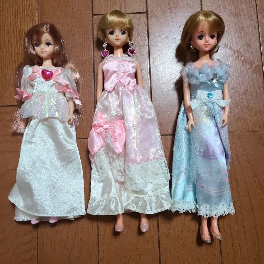 3체의 리카짱 인형, 각종 의상 포함. - 종류: 리카짱 인형 - 의상 색상: 화이트, 핑크, 블루 - 특징: 하트 귀찌, 레이스 드레스 - 수량: 3체 세트 - 머리 색상: 브라운, 금발, 라이트 브라운 방문해 주셔서 감사합니다.