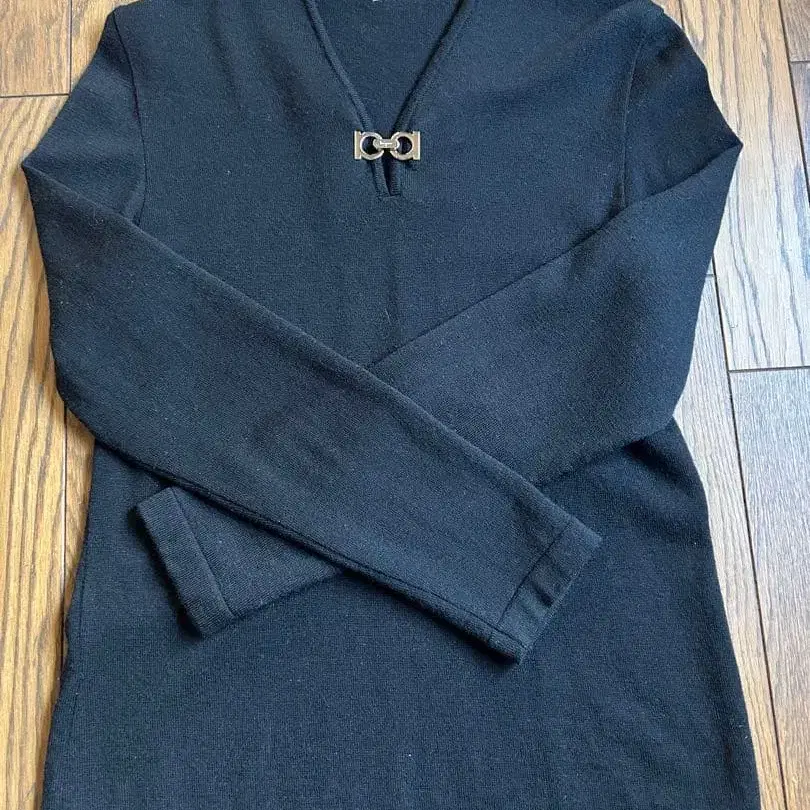 살바토레 페라가모 로고 금장 장식 고급 윤기 울 두께감 니트 튜닉