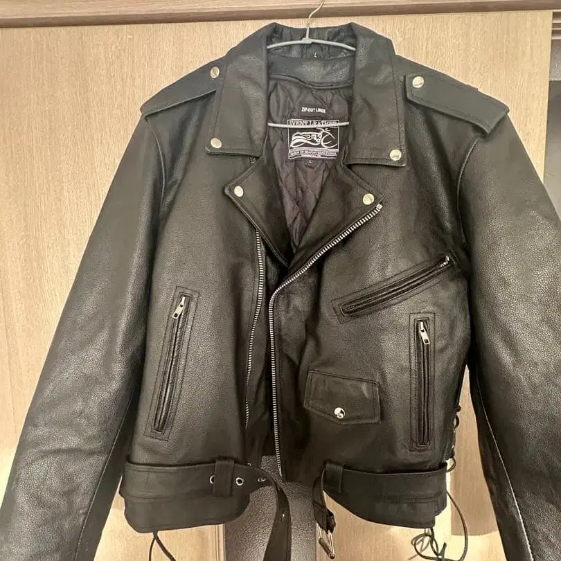 블랙 더블 라이더 자켓, 가죽 소재, 사이드 레이스업 디자인. - 색상: 블랙 - 디자인: 더블 라이더스 - 소재: 가죽 - 특징: 사이드 레이스업 - 포켓: 전면 지퍼 포켓 가격 인하 가능합니다. 방문해 주셔서 감사합니다.