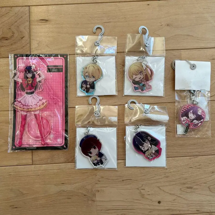 최애의 아이 아크릴 스탠드 피규어와 아크릴 키링 5개입니다.