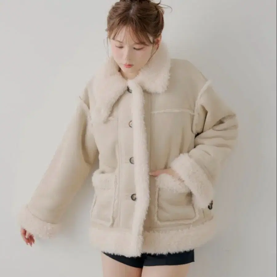 JEANASIS 무스탕 코트 베이지 숏 기장