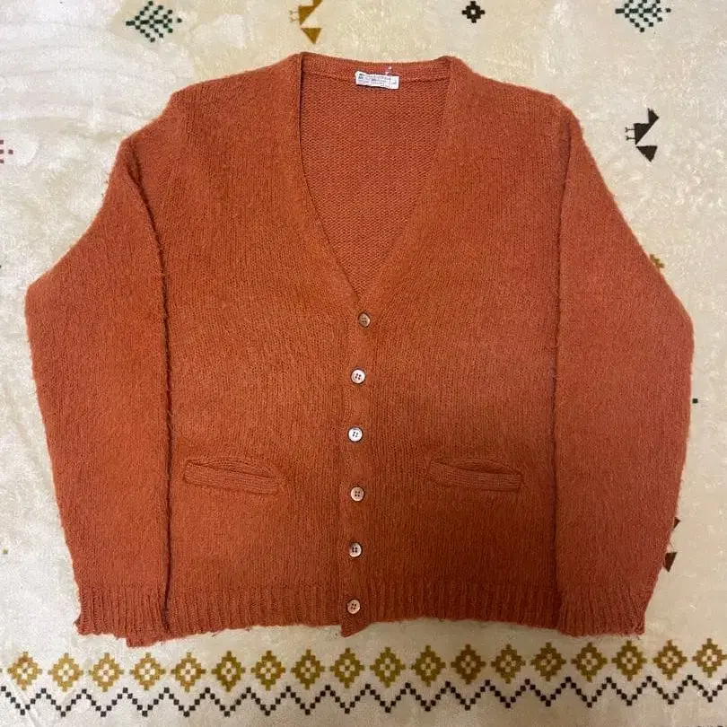 60s 모헤어 가디건 오렌지 긴 털 샤기 빅 사이즈