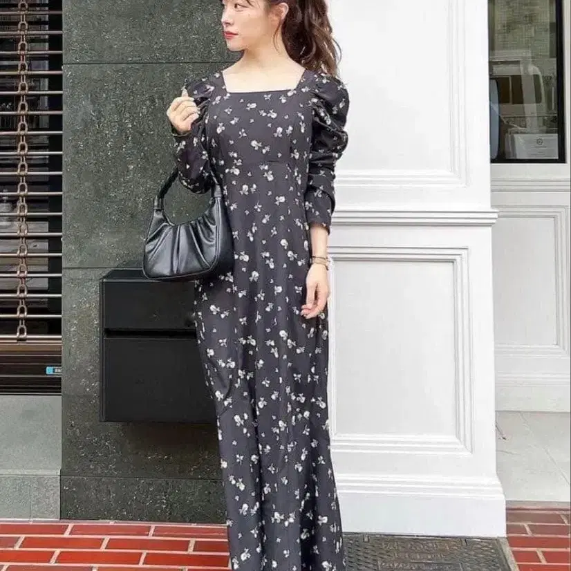 코코딜 롱 원피스 블랙 꽃무늬