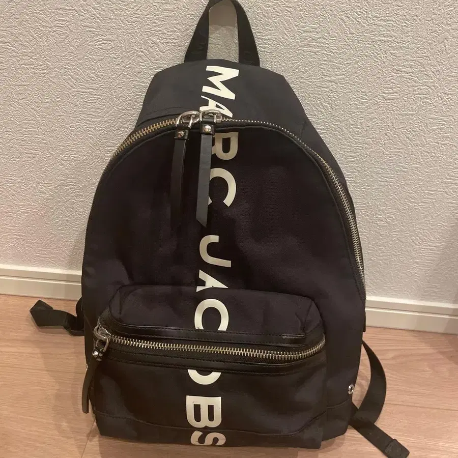 프론트 포켓이 달린 심플한 블랙 백팩.