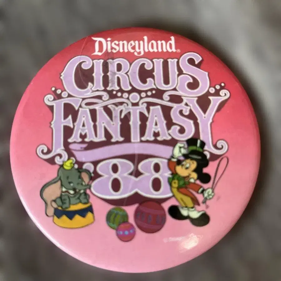 디즈니랜드 서커스 판타지 88 테마의 핑크색 캔뱃지.