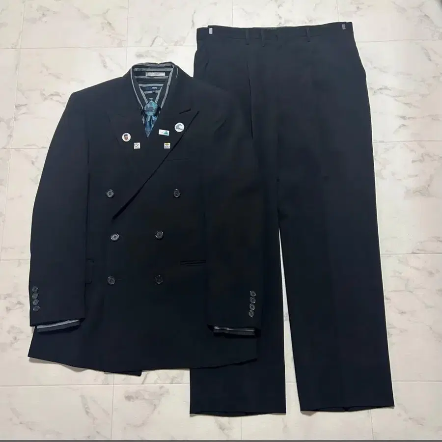 • 90s 셋업 셔츠 넥타이 핀즈 블랙 성인식 빈티지