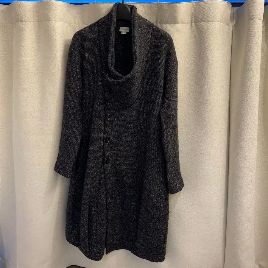 이탈리아제 TRANSIT PAR SUCH 트랜짓 니트 코트 스웨터입니다. 넥 부분의 입체감이 인상적입니다. 트랜짓 파서치다운 하이센스한 마감입니다. 소재 울 60% 나일론 15% 레이온 13% 모헤어 7% 알파카 3% 폴리에스테르 2% 색상 블랙 계열 사이즈 2 어깨 너비 49cm 겨드랑이 아래 가슴 너비 45cm 최소 가슴 너비 42cm 기장 92cm 소매 길이 50cm 상품 상태 사용감이 있으며, 약간의 스크래치와 희미한 오염, 보풀이 있습니다.