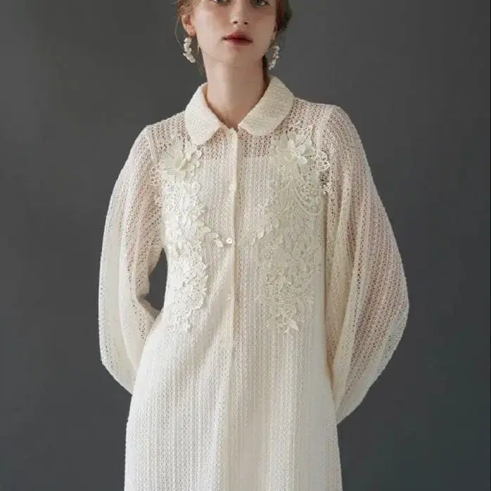 택 포함 미사용 새상품 셀프 포드 벨로아 자수 원피스 그레이 38