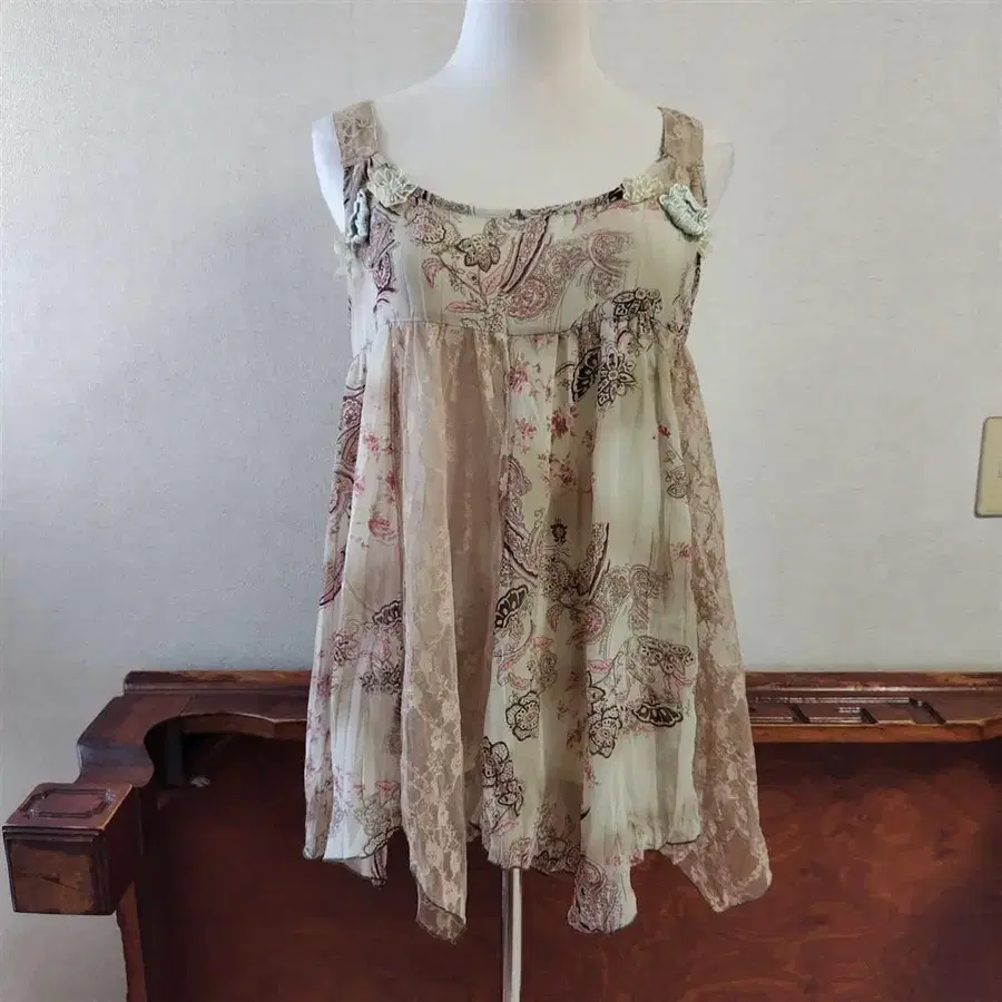 새상품 꽃무늬 슬리브리스 야마다야 아이보리 Ample