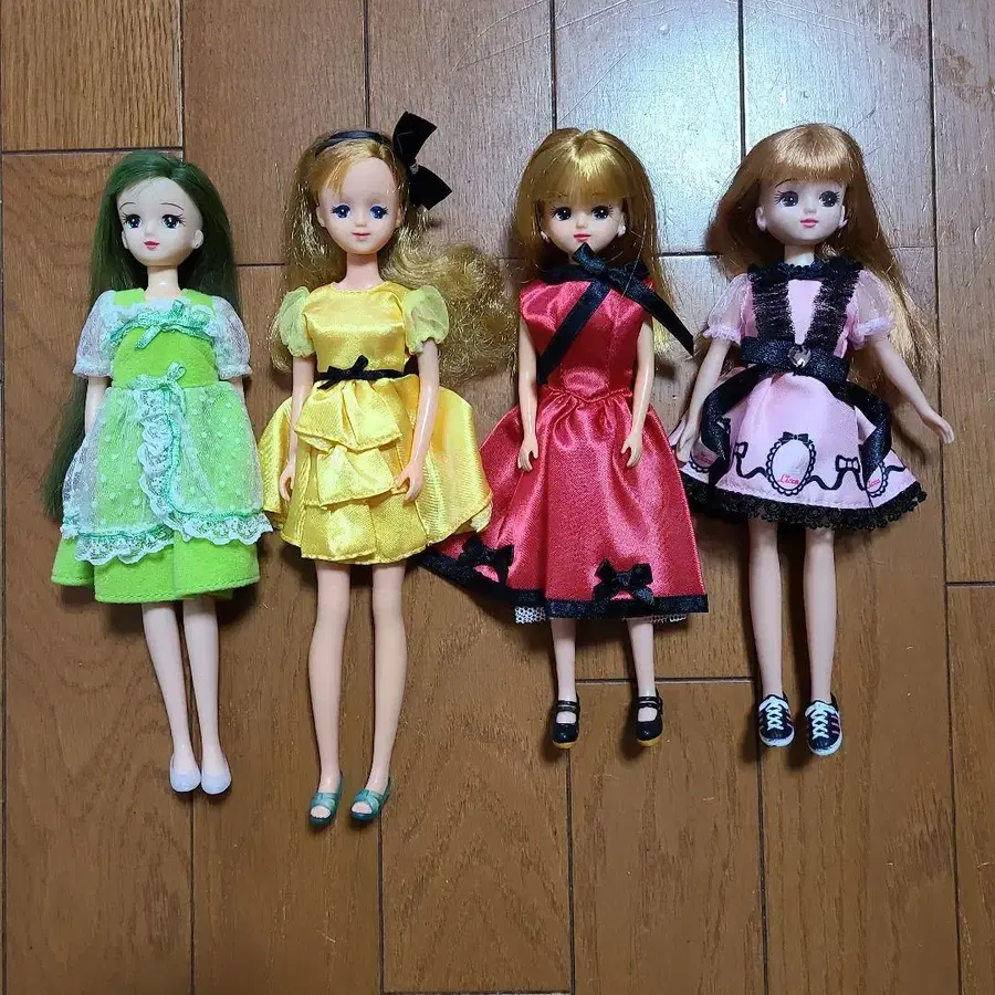 자동 번역되었어요. 원문보기다양한 의상과 머리 색깔을 가진 리카짱 인형 세트입니다.