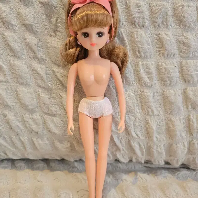 금발의 컬 헤어스타일과 그린 컬러 눈을 가진 인형. - 헤어스타일: 금발의 컬 헤어 - 복장: 화이트 팬티만 - 리본: 핑크 리본 포함 - 뒷면: 등은 무지 - 눈 색깔: 그린 컬러 눈 방문해 주셔서 감사합니다.