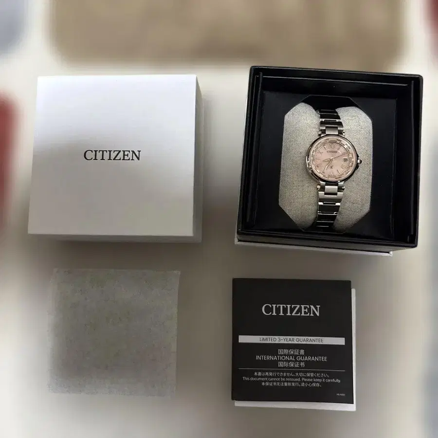 CITIZEN 핑크 다이얼 전파 시계 에코 드라이브