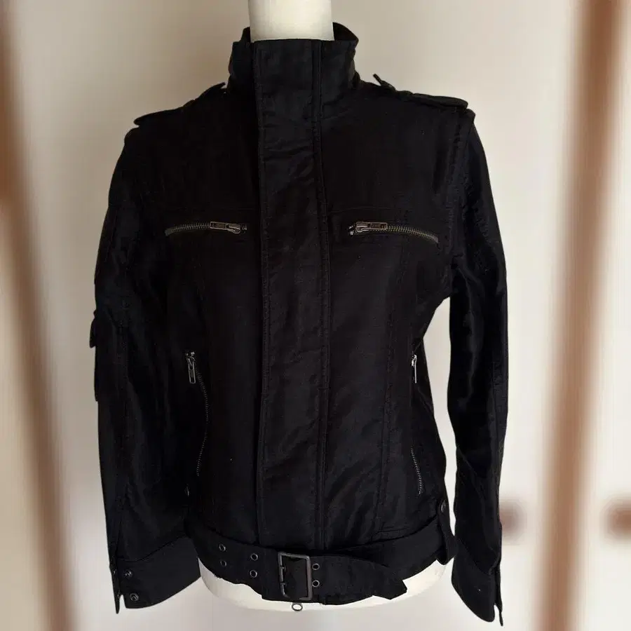 스탠드 카라의 블랙 자켓, 지퍼 포켓과 허리 벨트가 있어 스타일리시합니다. - 색상: 블랙 - 디자인: 지퍼 포켓 부착 - 스타일: 스탠드 카라 - 특징: 허리 벨트 부착 - 소매: 긴팔 방문해 주셔서 감사합니다.