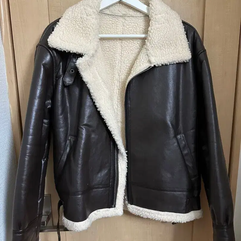• 새상품 브라운 인조 가죽 가죽 자켓 안감 부착 타입