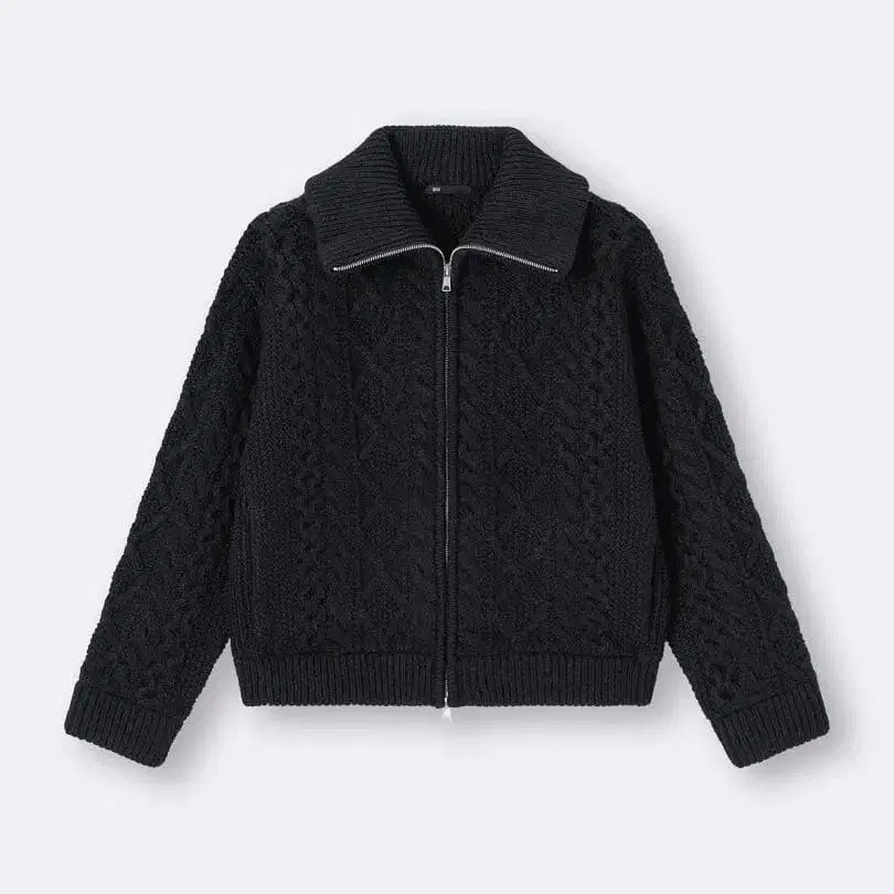 YASHIKI 집업 블루종 케이블 니트 숏 기장