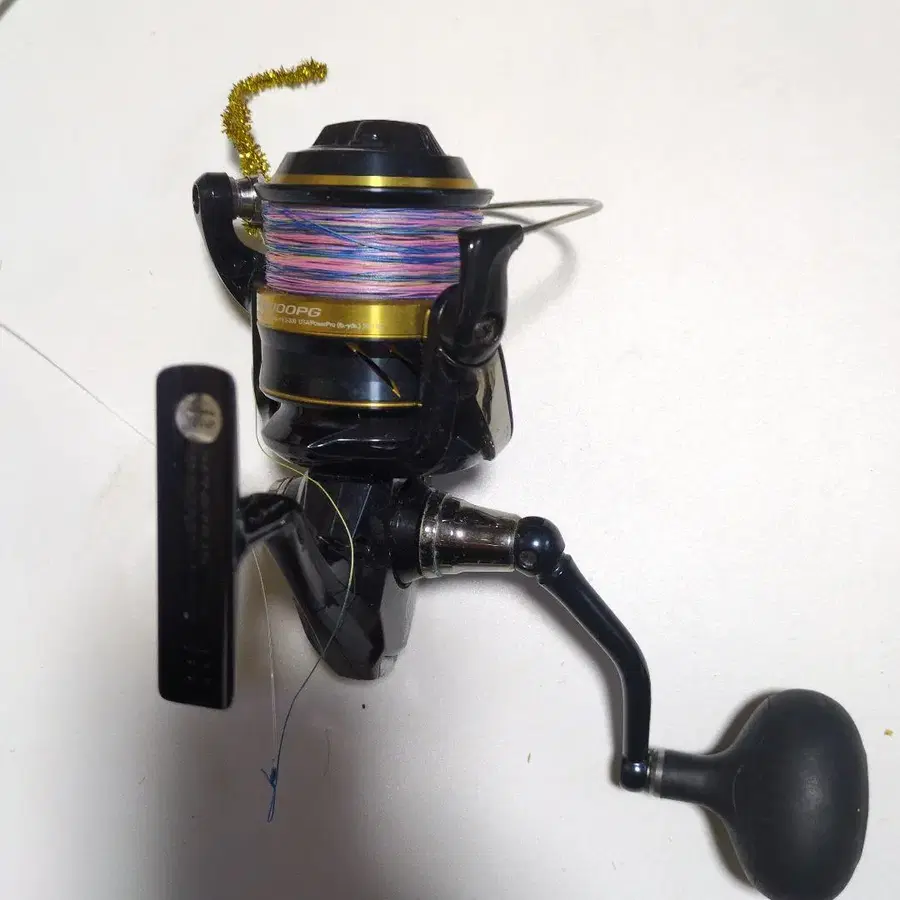 높은 내구성을 가진 스피닝 릴, 부드러운 회전이 특징. - 모델: SW6000PG - 스풀 색상: 블랙과 금색 - 라인 색상: 멀티컬러 (핑크, 파랑, 노랑, 그린) - 핸들 모양: T자형 핸들 - 특징: 부드러운 회전과 높은 내구성 방문해 주셔서 감사합니다.