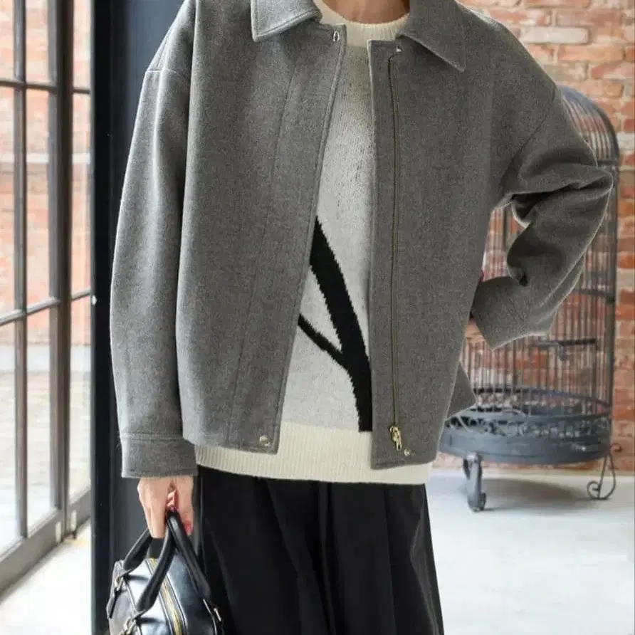 Honeys 카라 부착 블루종 그레이