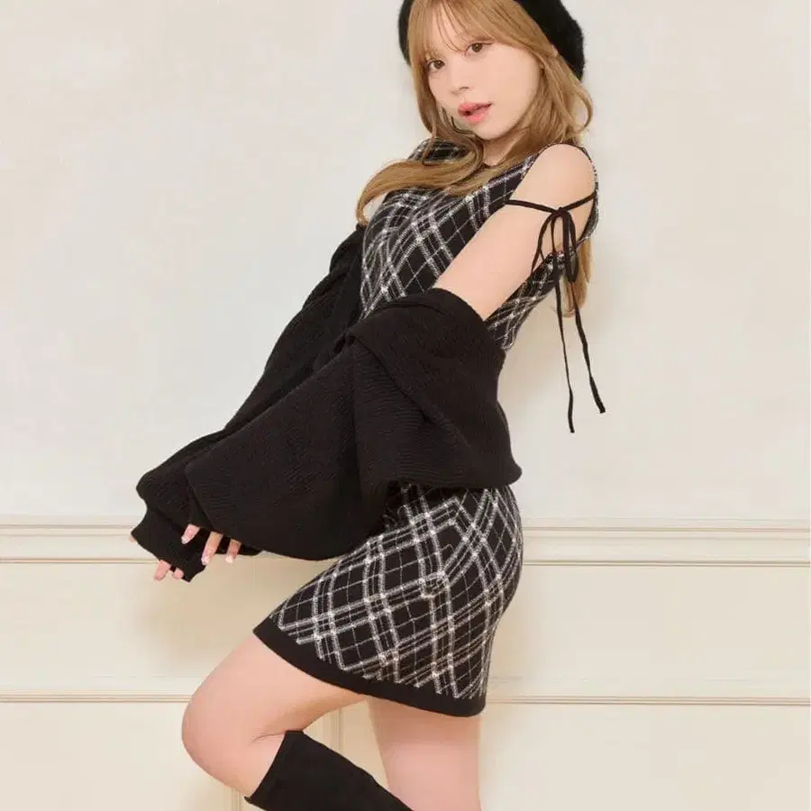 레이어드 스타일 니트 원피스