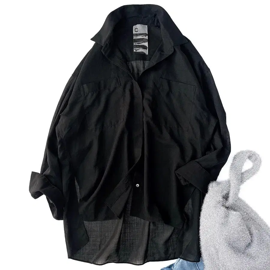 새상품급 Chaos 카오스 울 혼방 롱 시어 셔츠 블랙 빅 실루엣