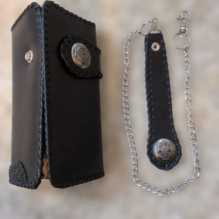 블랙 가죽 지갑 체인