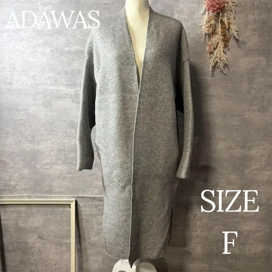 ADAWAS 롱 니트 코트 가디건 그레이 노카라 겉옷