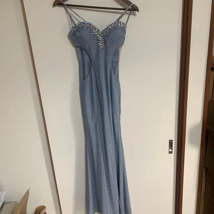 비즈 장식이 들어간 라이트 블루 색상의 슬릿 맥시 드레스. - 브랜드: JEWELS - 색상: 라이트 블루 - 디자인: 슬릿, 비즈 장식 - 스타일: 맥시 드레스 - 스트랩 타입: 스파게티 스트랩 방문해 주셔서 감사합니다. 가슴 부분부터 120cm 길이입니다. 04