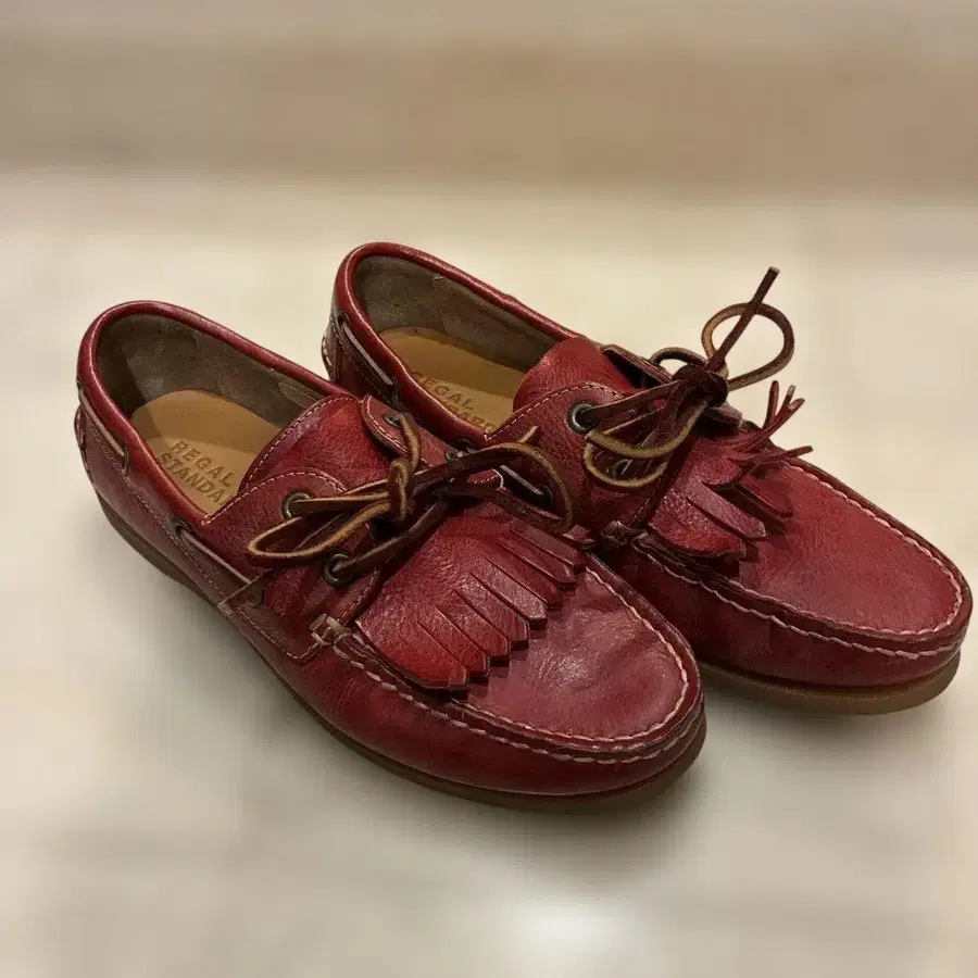 [컨디션 최상] 리걸 스탠다드 가죽 퀼트 데크 슈즈 24cm 레드
