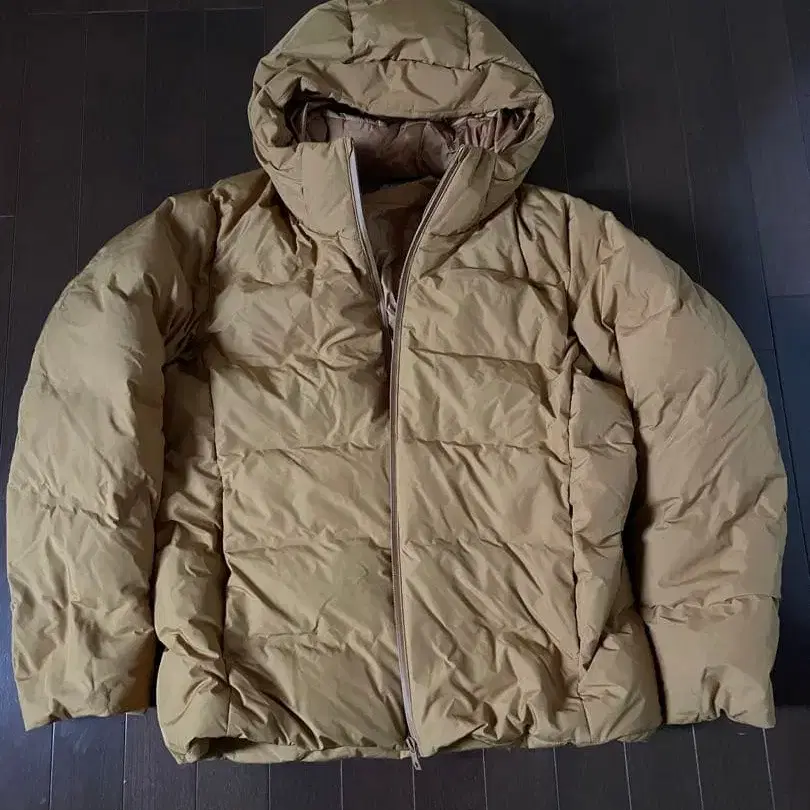 UNIQLO 유니클로 심리스 다운 후드티 XL 머스타드 카멜 새상품급