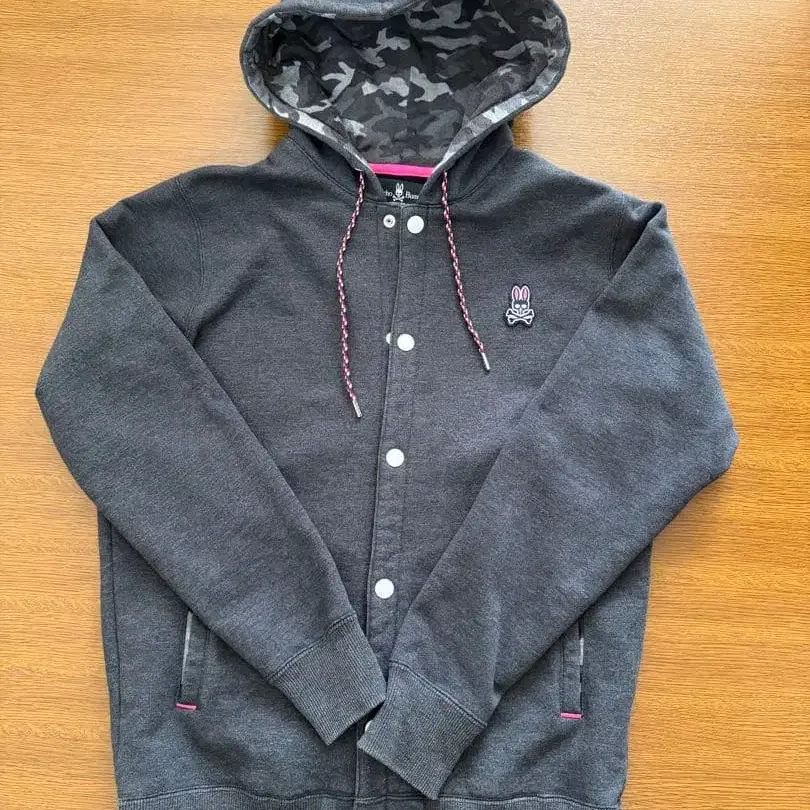 카모 패턴의 후드 부착 그레이 후드티, 단추식 사양. - 브랜드: Psycho Bunny - 사이즈: S - 색상: 그레이 - 디자인: 카모 패턴 후드 - 특징: 단추식 약간 슬림 타입의 스냅 버튼 후드티입니다. 수년간 착용했습니다. 방문해 주셔서 감사합니다.