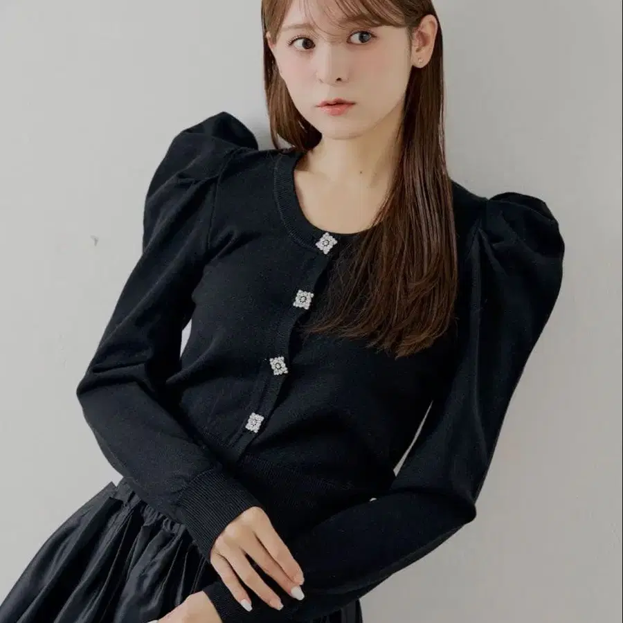 비쥬 버튼이 얼굴 주변을 화사하게 연출하여 고급스러운 인상을 줍니다.