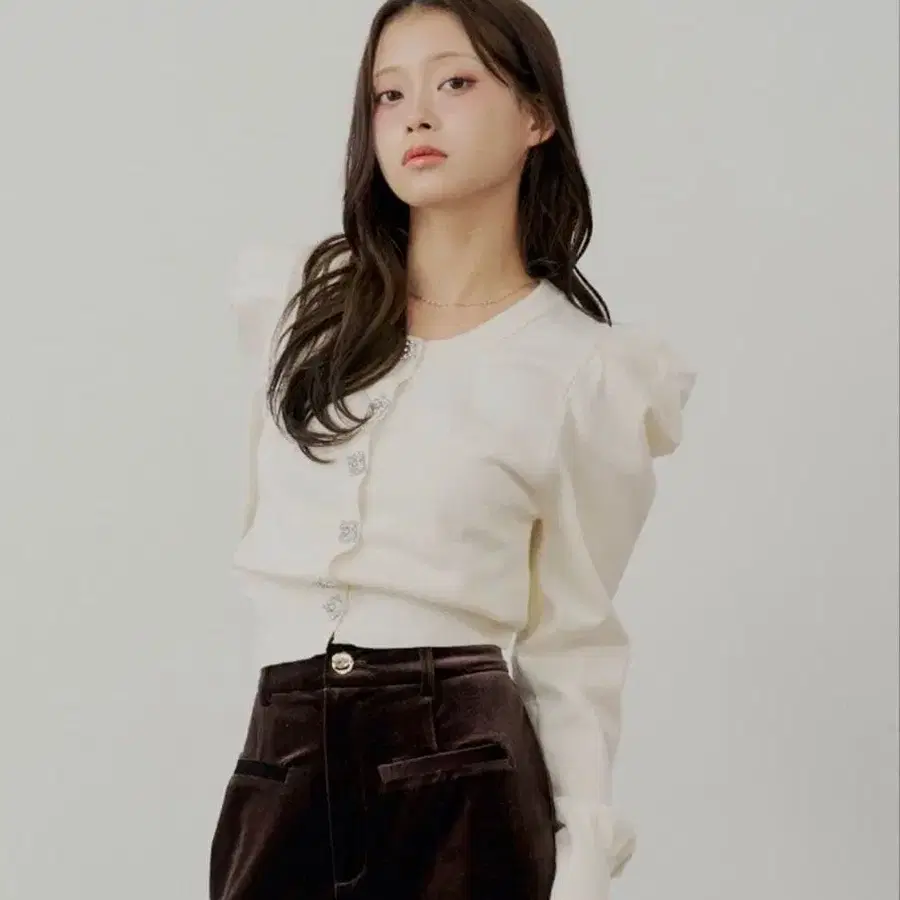 • DAZZLIN 더즐린 펄 비쥬 장식 퍼프 슬리브 니트 가디건