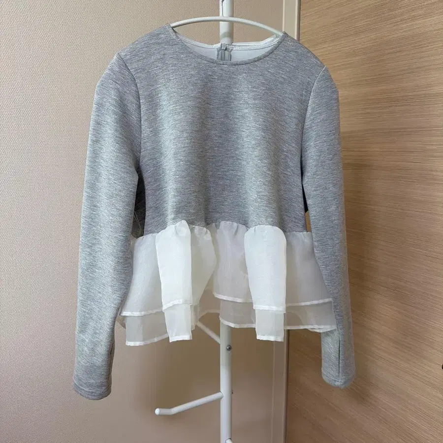 La-gemme 라지엠 시어 프릴 티어드 페플럼 도킹 상의 컬러 → 그레이